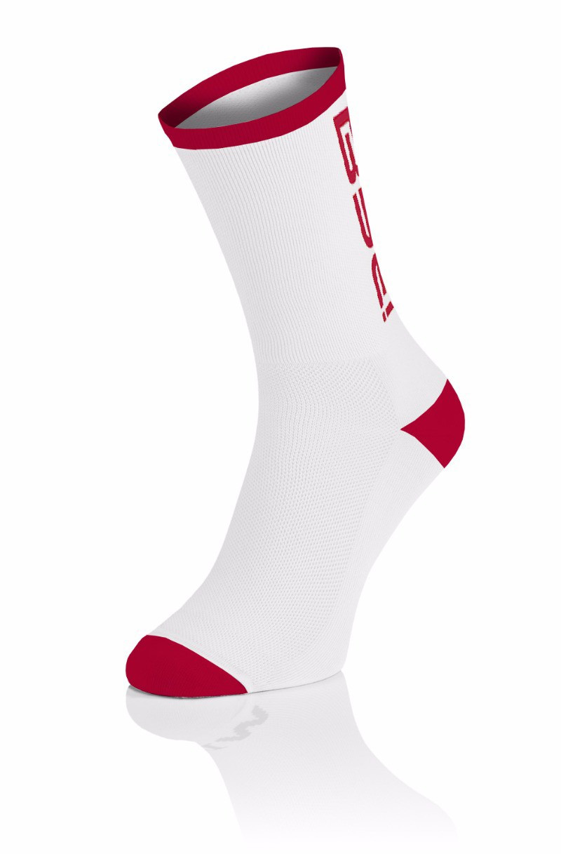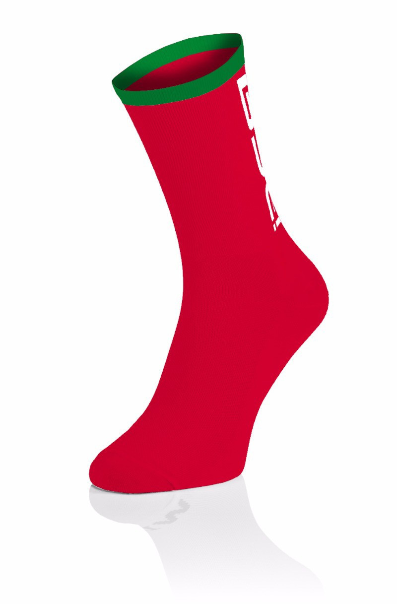 Mooie hoge race sokken in de kleuren van BYE! Nutrition. De Wielervoeding sokken zijn gemaakt van hoge kwaliteit polypropyleen (97%) en elastan (3%) en hebben een comfortabele pasvorm.