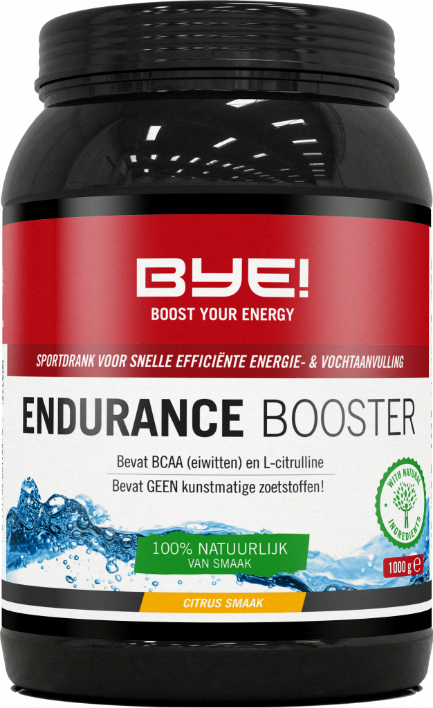 De BYE! Endurance Booster bestaat voor 92% uit hoge kwaliteit koolhydraten, met aanvulling van elektrolyten en een Endurance Booster formule dat bestaat uit instant BCAA (snel opneembare eiwitten), L-glutamine, L-Taurine, L-Carnitine en L-citrulline.