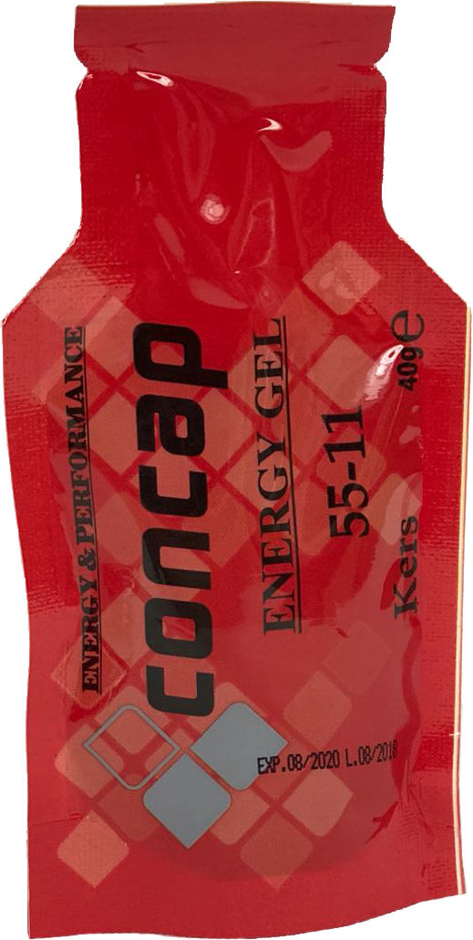 Concap Energy Gel 55-11 is een gel die die geproduceerd word voor sporters die veel zweten en daardoor meer energie en krachtverlies kunnen opvangen. De totaal nieuwe formule is vloeibaar en bevat de nodige zouten. De frisse cherry smaak werd gespecialiseerd om minder belastend te zijn voor het verteringssysteem. Ideaal voor de sporter die langdurig willen presteren!