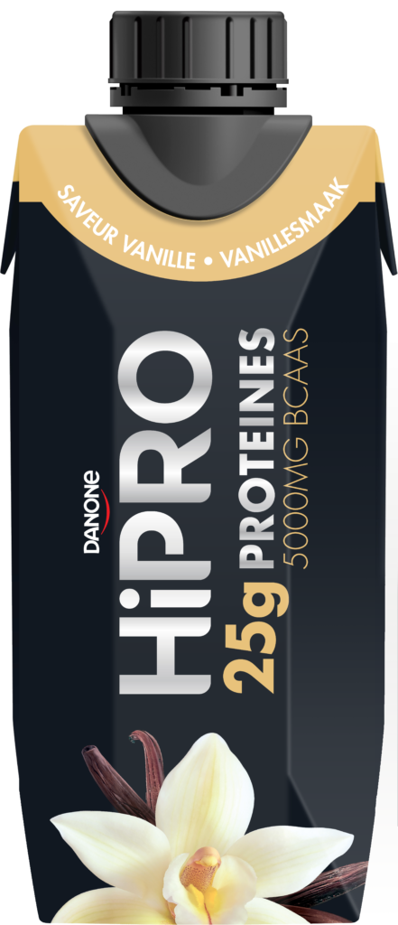 De Danone HiPRO is een kant-en-klare drank met 25 g eiwitten. Om de spieropbouw en onderhoud in stand te houden bevat het 9 essentiële aminozuren en 5000 mg BCAA’s. Deze lekkere eiwitrijke HiPRO-shake is verpakt in een handige 330 ml verpakking waardoor het gemakkelijk mee te nemen is. Bovendien is de HiPRO lactosevrij! Verkrijgbaar in twee heerlijke smaken – chocolade en vanille.