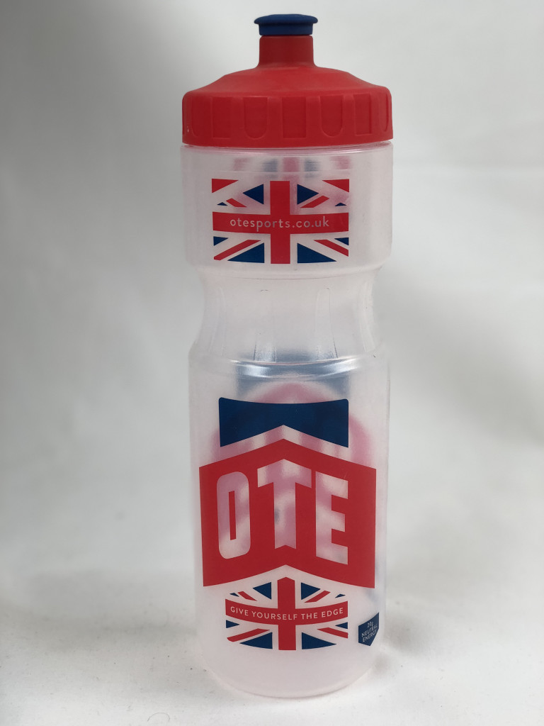 Bidon met het embleem van OTE. Je kan de bidon vullen met 800 ml vloeistof.