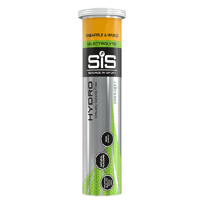 SiS Go Hydro Pineapple bevat bijna geen calorieën (slechts 15 kcal per liter). Go Hydro is daarom een perfecte sportdrank als je vocht op wil nemen, zonder calorieën. Go Hydro bevat een hoge hoeveelheid natrium (zout) wat optimale hydratatie bevordert voor intensieve inspanning in warme omstandigheden. Go Hydro kan ook prima gebruikt worden om de hoeveelheid electrolyten in GO Electrolyte en/of GO Energy te verhogen. De Go Hydro is verkrijgbaar als buisje met 20 bruistabletten. Eén bruistablet weegt 4 gram en is goed voor 500 ml drank.