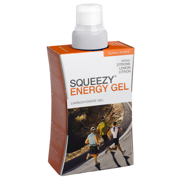 Squeezy energy gel racer bottel is een handig ergonomisch ontworpen flesje met handgrip en hersluitbaar dopje dat via de mond vlot open en dicht kan, de gel is vloeibaar en vlot te gebruiken, er zitten 83 gram koolhydraten in 1 racer bottel, deze verpakking kan terug aangevuld worden met de Refiller fles welk de inhoud van 4 racer bottels bevat, zo kan men de racer bottel hergebruiken.