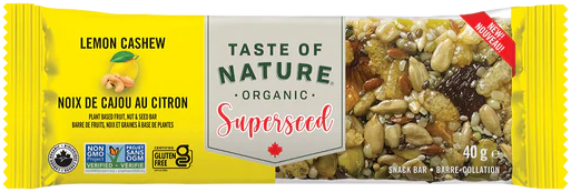 Taste of Nature's Lemon Cashew-reep is een verfrissende en voedzame traktatie die je smaakpapillen zal verheugen. Deze unieke energiereep combineert zorgvuldig geselecteerde biologische ingrediënten om een onweerstaanbare smaakbeleving te creëren.