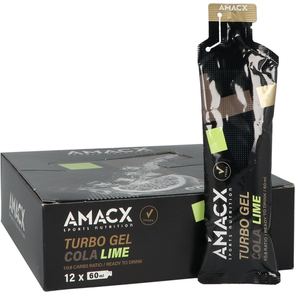 De Amacx Turbo Gel is een kant-en-klare sportgel die al water bevat. Deze gel bevat verschillende bronnen van koolhydraten met een geleidelijke afgifte, in een verhouding van 1:0.8 koolhydraten. Het is verkrijgbaar in de smaken Citrus en Cassis Cafeïne.