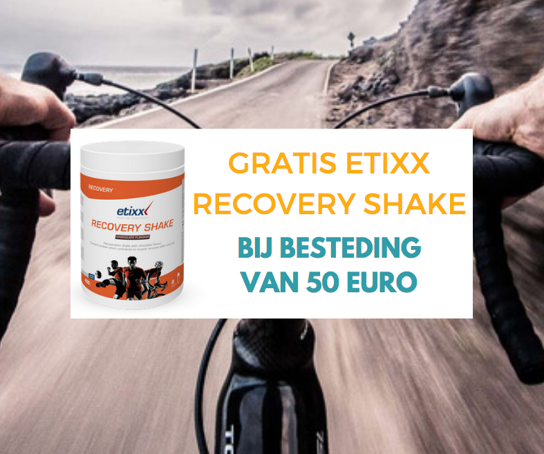 Tijdelijk ontvang je bij een bestelling van €50,00 of meer een gratis pot Etixx Recovery Shake Chocolate of Raspberry van 400 gram, t.w.v. €17,95!