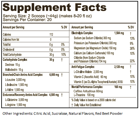 TriFuel™ is een heerlijk smakende poedermix met hoogwaardige ingrediënten, waaronder BCAA's, elektrolyten, aminozuren, koolhydraten en andere ingrediënten gecombineerd om uw prestaties en uithoudingsvermogen te verbeteren. TriFuel™ wordt gebruikt door topsporters voor uithoudingsvermogen, prestaties, verbeterde focus en hersteltijd.