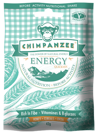 De QuickMIX shake bevat een mix aan granen (mais, gerst en haver), cacao, honing en soja lethicine voor een evenwichtige smaak. Ze is verrijkt met een brede waaier aan vitamines en haver B-glucanen, die helpen om het cholesterolpeil laag te houden. De Chimpanzee QuickMIX met zijn hoog gehalte aan oplosbare en niet-oplosbare vezels, bevat enkel plantaardige bestanddelen, waardoor de mix ook geschikt is voor vegetariërs en veganisten.