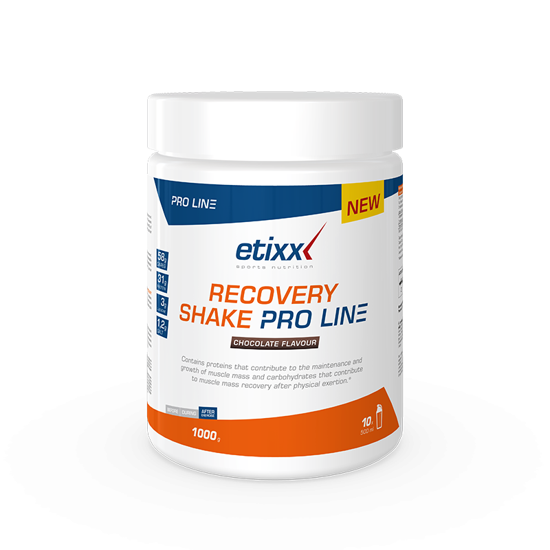 Etixx Recovery Shake ProLine is een hooggedoseerde mix van koolhydraten (±60g), wei-proteïne isolaat (±30g) en leucine (3g), is samengesteld op basis van de meest recente wetenschappelijke inzichten. Bovendien bevat deze professionele shake ook 1,2g zout per portie met als doel de via zweet verloren elektrolyten (zouten) terug aan te vullen en de rehydratie te versnellen en optimaliseren.