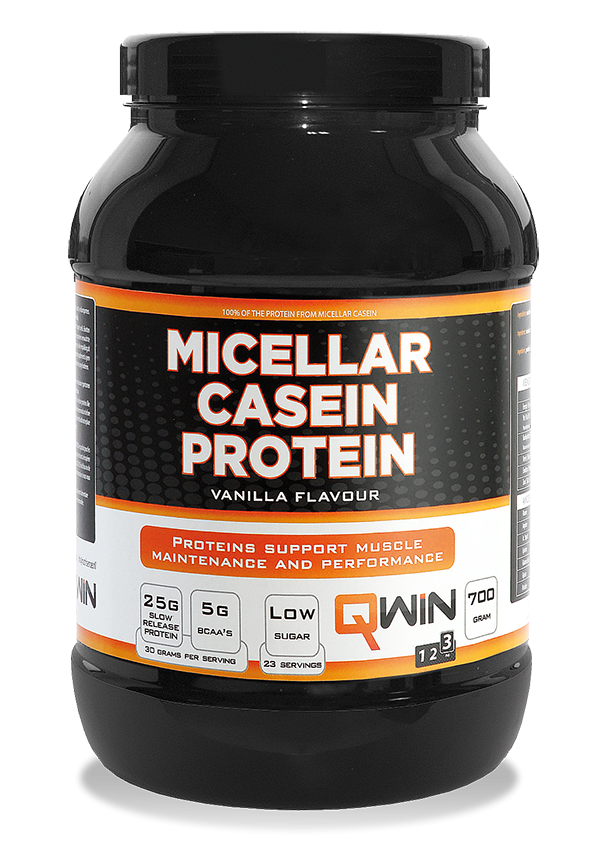 QWIN Micellar Casein Protein - Vanilla - 700 gram (LET OP! THT 28-2-2025) - Hersteldrank - Na de inspanning