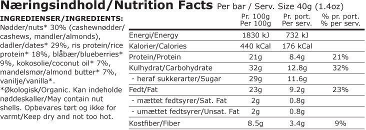 Raw Snacks Protein Blueberry Vanilla - 1 x 40 gram